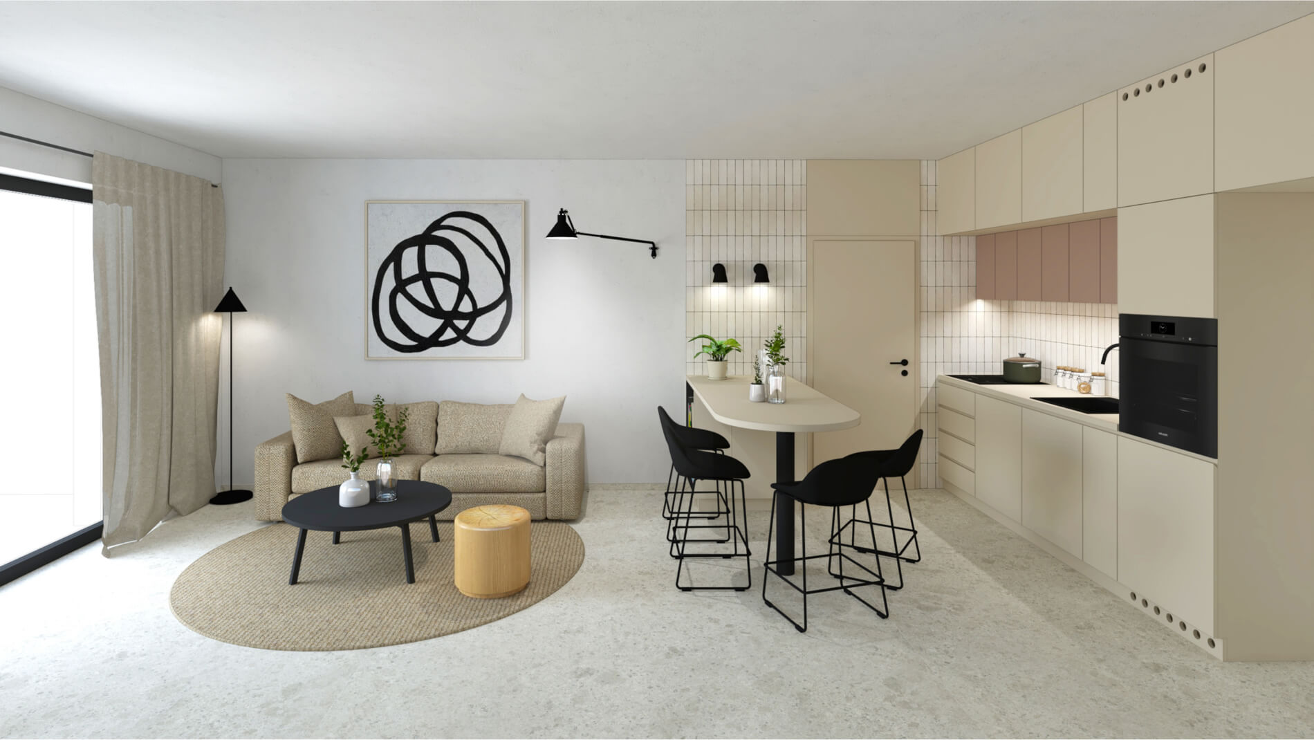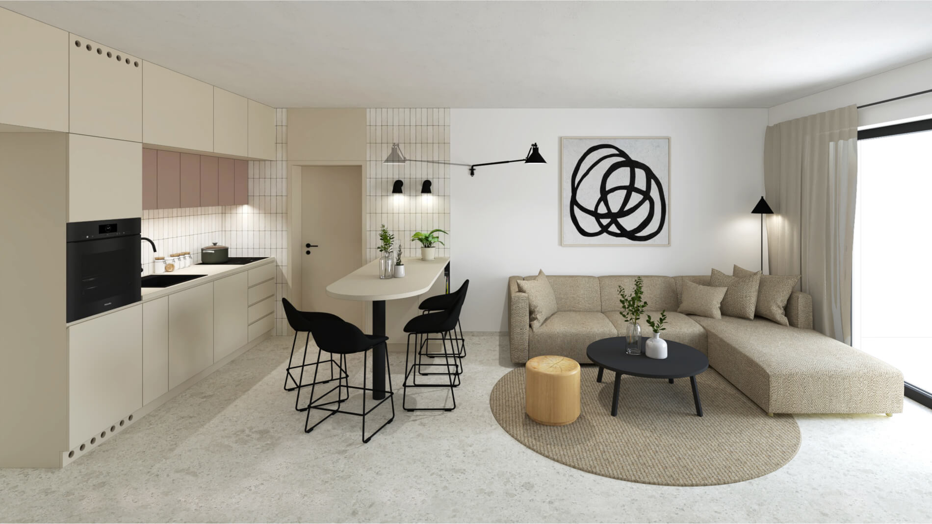 Obývacia izba s kuchynským kútom