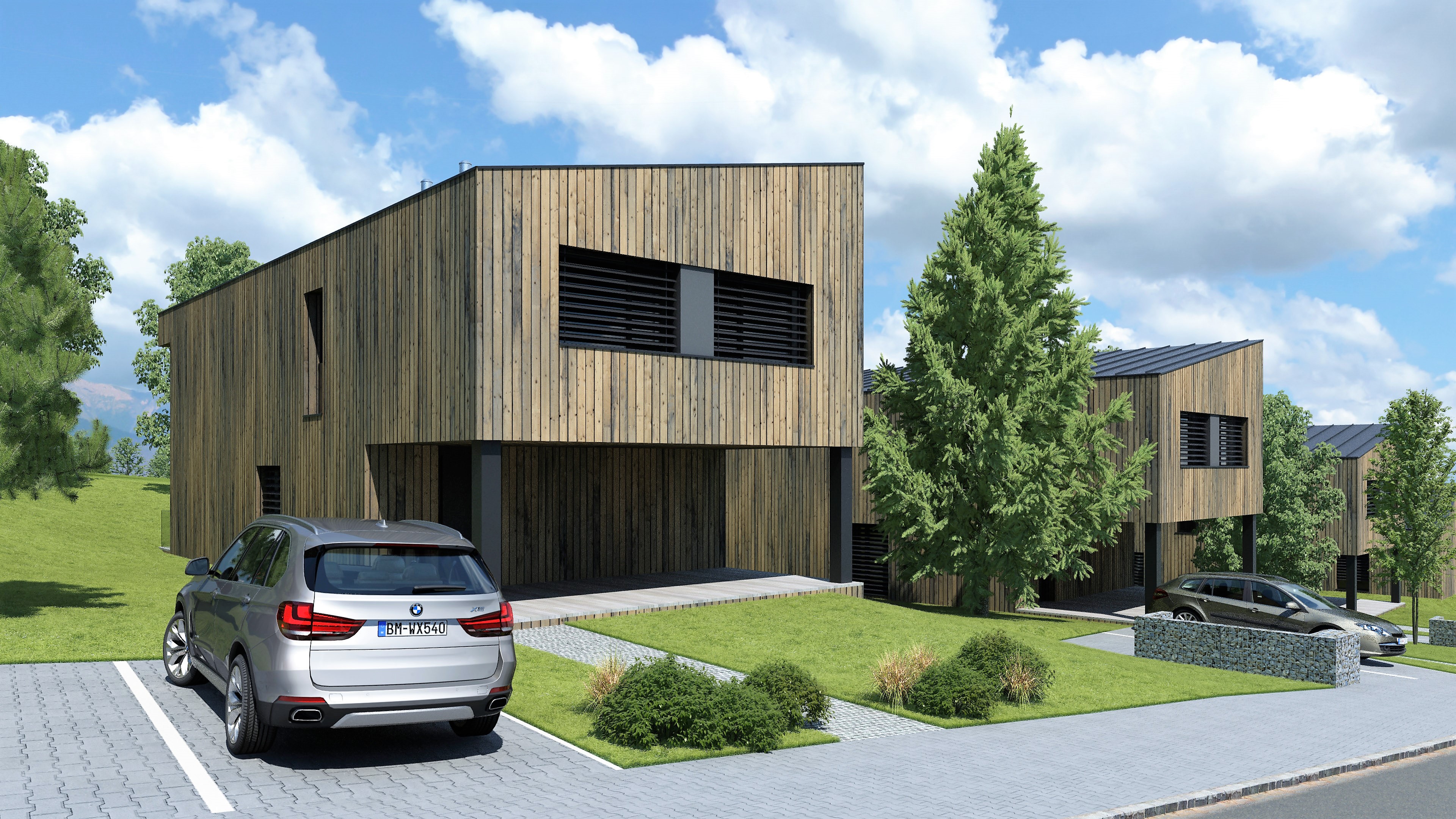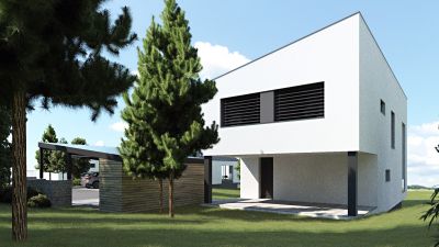 Samostatne stojaci 4 izbový dvojpodlažný dom. Dom je vhodný pre trvalé alebo rekreačné bývanie viacčlennej rodiny, kde každý člen zaručene nájde svoj kúsok súkromia. Na prvom podlaží sa nachádza kuchyňa s jedálňou, WC, technická miestnosť a obývačka, z ktorej je vstup na terasu. Na druhom podlaží sa nachádza chodba, WC, kúpeľňa, spálňa, dve izby a galéria. Vnútorná dispozícia domu je variovateľná podľa požiadaviek. Nadštandardná presklená fasáda prechádzajúca oboma podlažiami prepúšťa do interiéru slnečné lúče a vytvára prirodzené prepojenie interiéru s exteriérom.